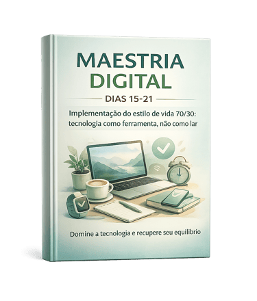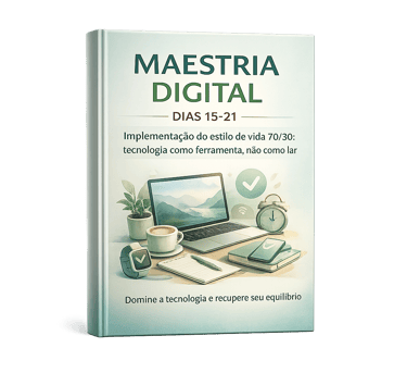 Maestria Digital (Dias 15-21) – Implementação do estilo de vida 70/30: tecnologia como ferramenta, não como lar.